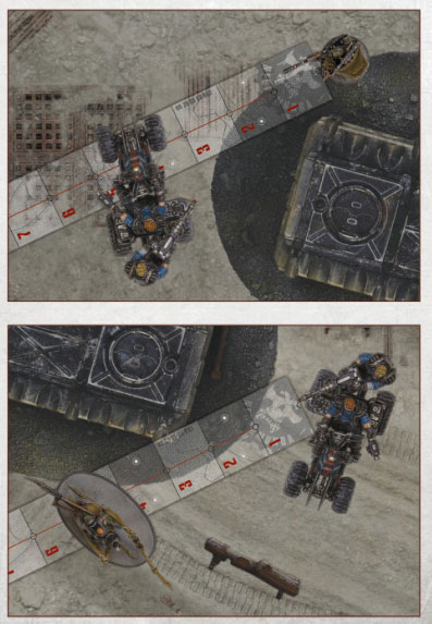 Next, measure the distance between the model making the ranged attack and the target, to ensure that the target is within the range of the weapon. In the case of a fighter, range is measured from the model to the nearest point of the target model. In the case of a vehicle, range is measured from the weapon to the nearest point of the target model.